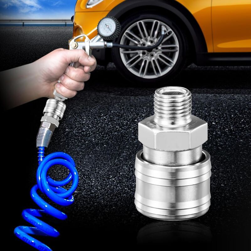 • Air Line Fittings Dimensions: 1/4" air hose connectors with external and internal threads for air quick connects