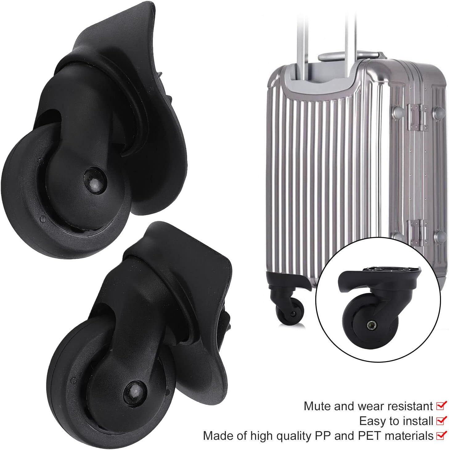 Universal Wheel Replacement: Trunk wheels is made of PP+PET material, sturdy