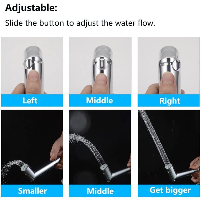 • Adjustable: The spray head adopts a new type of switch design, and the water pressure and water flow can be adjusted by sliding the switch