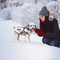 Keep your dog warm and stylish with this insulated pet vest, perfect for cold weather walks and outdoor activities.