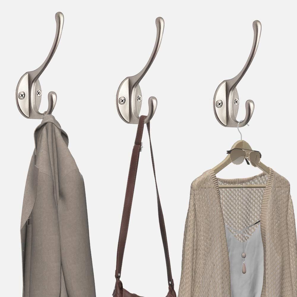 10 Pack Dual Coat Hooks Wall Mounted with 40 Screws Retro Double Hooks Utility Silvery Hooks for Coa