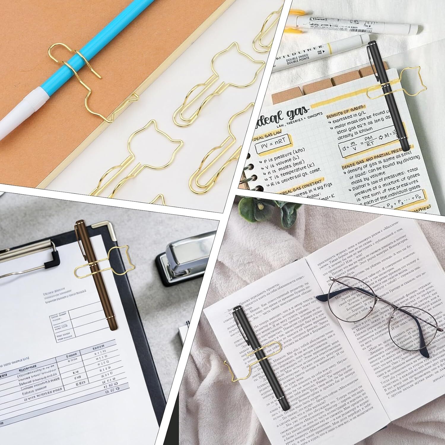 ADORABLE CAT DESIGN:Gold metal pen clips with delightfully cute cat shapes add a fun, stylish touch to notebooks, planners, papers, and office documents —perfect for cat lovers and desk decor