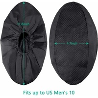 Easy to Clean and Reuse: The shoe covers are machine washable and hand washable, just clean them with a damp cloth after each wear and can be reused multiple times; effectively keep floors clean and tidy while protecting hardwood floors, carpets, and household tiles. What You Get: 10 pairs of black reusable shoe covers, enough to use and replace during housework; each cover has a sole length of approx. Adult shoe covers 36-44 fit all sizes. black 10 pairs of reusable non-slip shoe covers for home, shoe covers, machine washable, black Breathable and durable: Compared with flannel, which is heavy and easily deformed, these dust-proof oxford boots and shoes covers are breathable, lightweight, durable and not easily deformed. It has an elastic band that wraps around your shoes securely and prevents them from getting wet or dirty. The anti-shoe covers are designed with non-slip soles to reduce the risk of slipping, and the thickened soles can reduce noise, which can bring you a good wearing experience even in heavy rain. Applies to many places: These rain shoe covers are practical accessories for home, workshop, cleaning, etc. They are particularly suitable for use in toilets, bathrooms, kitchens or after cleaning the room thanks to the non-slip sole so as not to leave footprints on the floor. Specification: Quantity: 10 pairs Size: 36-44 adult shoe covers can be worn in any size. black Material: Dustproof Oxford cloth. Packing: opp bag Package Included: 10 pairs of black shoe covers Kindly Tips: Please allow 1-2cm size error due to manual measurement.