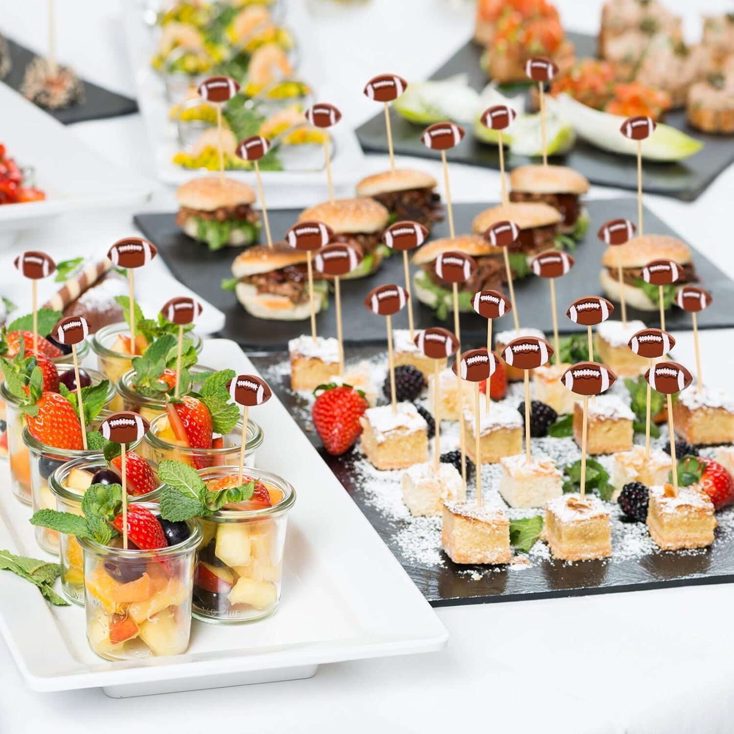 Package Includes: You will receive 100 pcs Football cocktail picks, each with a length of 4.7 inches/12 cm, twice the length of a regular toothpick, easy to firmly insert into food, can be used to decorate your party desserts, and meet your party decoration needs