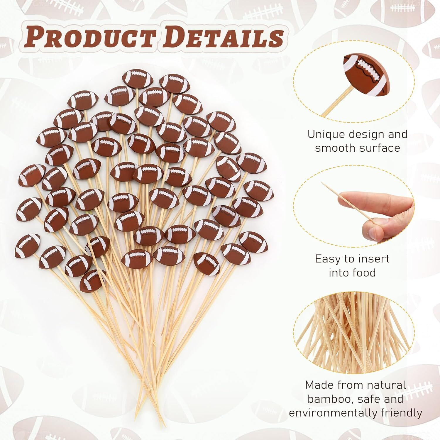 100 Pcs Football Toothpicks, 4.72 Inch Football Cocktail Picks for Appetizers, Long Bamboo Toothpick