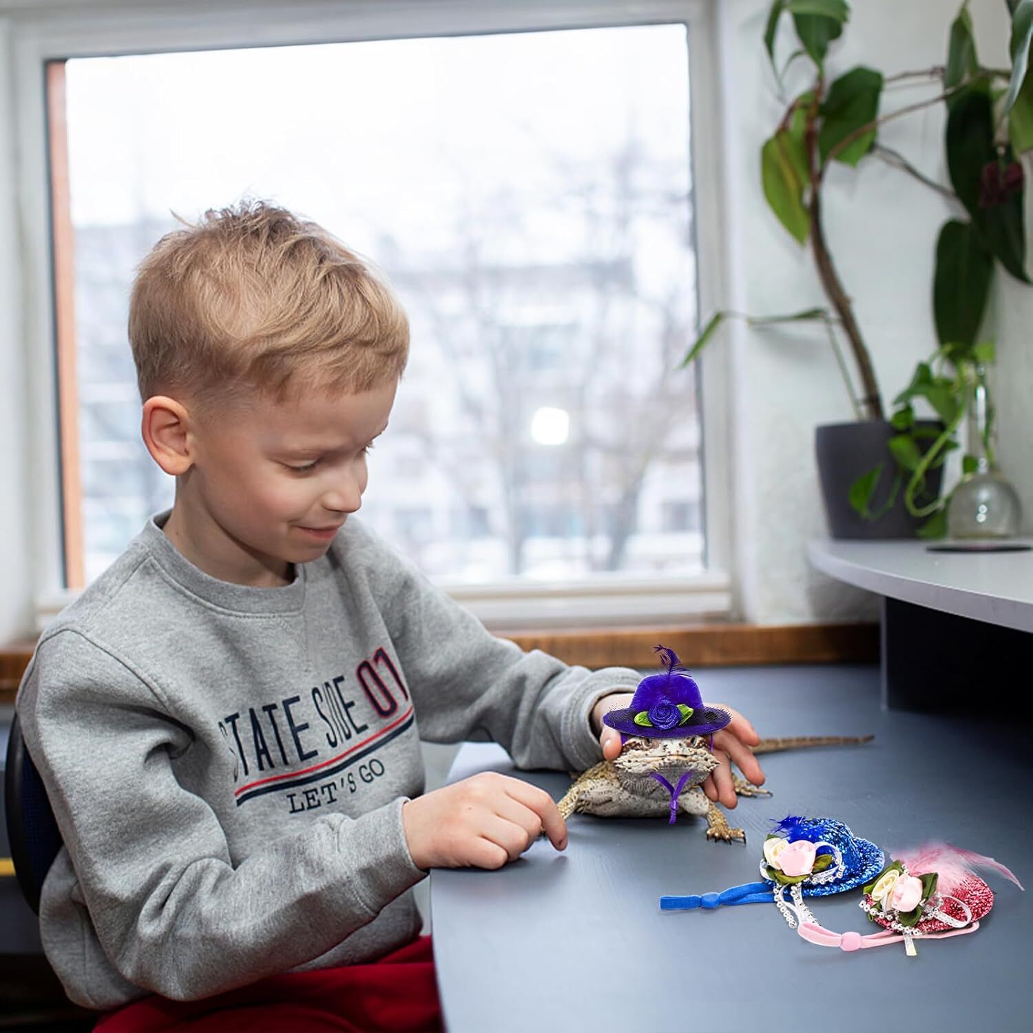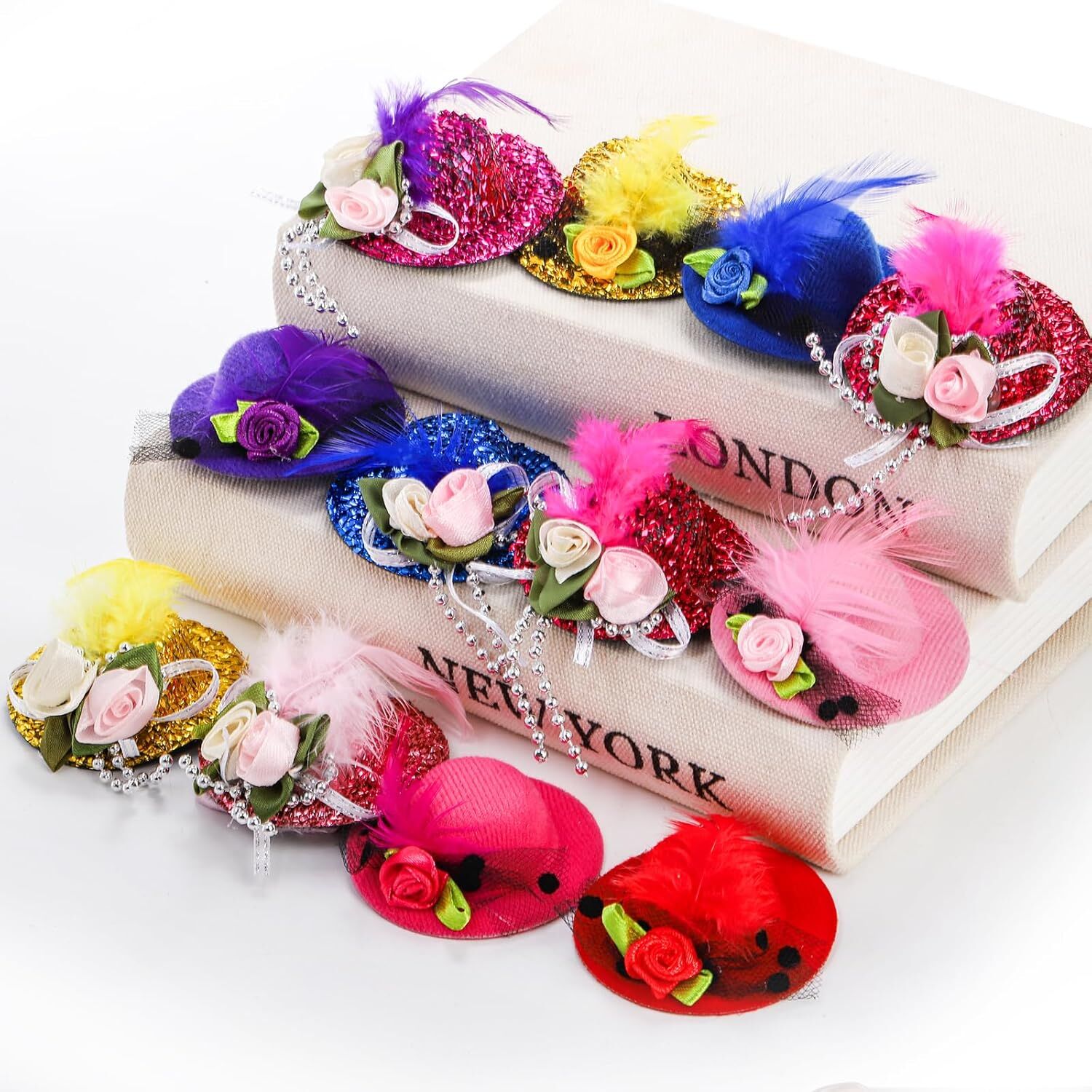 Unique Design: Our funny small hat in bright colors is decorated with feather and ribbon rose, making your mini pet animals cute and funny. The hats are designed with adjustable elastic chin straps and a movable buckle. You can fix the buckle to adjust the position of the hat, which ensures that small pets can wear them comfortably.