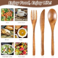 12 Pcs Wooden Utensils for Eating Set Wooden Spoon Fork Knife Cutlery Set Kitchen Wood Utensils Dinn