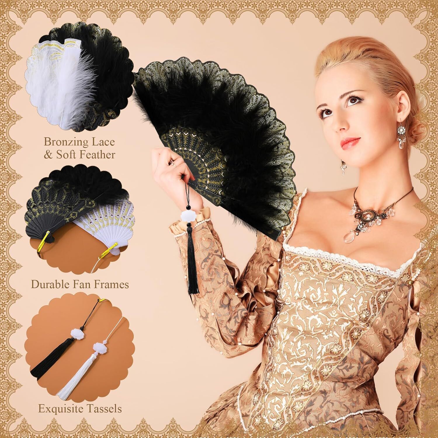 Wide Range of Usages: our feather hand fans are qualified and vintage, which is suitable for most occasions, such as wedding, dance props, stage performances, tea parties, Great Gatsby theme party,1920s costume, renaissance event theatrical performances, Halloween, retro themed parties, cosplay, masquerade parties, bridal showers, graduation ceremonies, outdoor garden parties or any other summer occasion