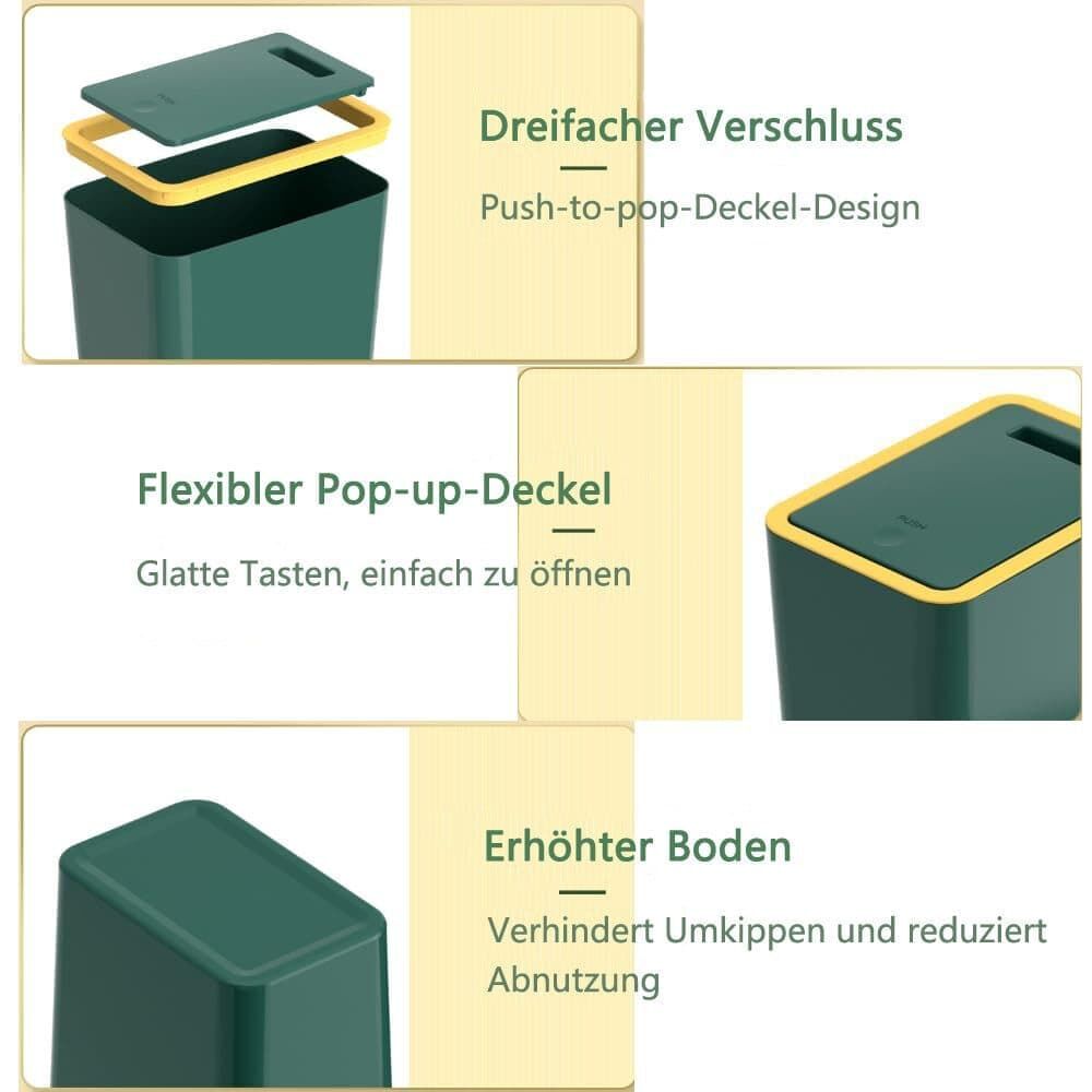 Premium PP trash can with odor-sealing pop-up lid, perfect for small spaces and versatile use in any room.