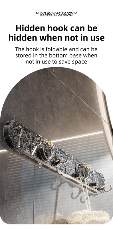 - Hidden Retractable Hooks: Hooks can be independently folded upward and hidden into the rail when not in use, preventing accidental bumps and maintaining a minimalist aesthetic.