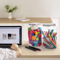 What You Get: Includes 2 clear plastic jars. The overall dimensions: 6" D x 9" H; Mouth diameter: 4.5"; Capacity: 118 OZ. Enough clear plastic storage containers can be used to meet your daily storage needs (Not safe in dishwasher).