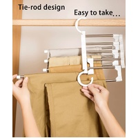 2 Pack Stainless Steel Adjustable 5 in 1 Pants Hangers Non-Slip Space Saving for Home Storage