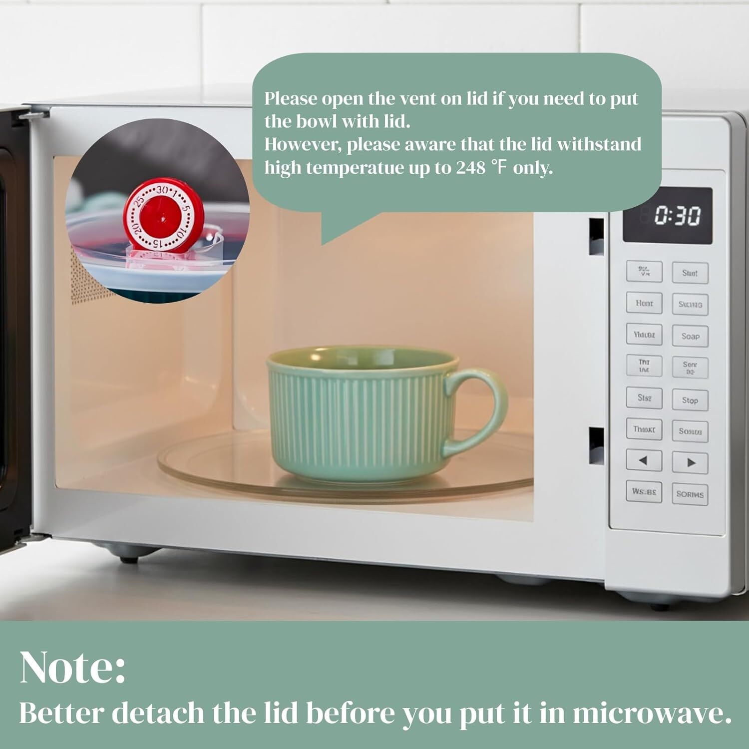 Leak-proof Vented Lids: With the silicon rings on lids, our soup crocks are leak-proof, able to prevent all spillage during heating in microwave or carrying outside. The vent on top could help quick cooling as well, considerate design that saves your time and energy!