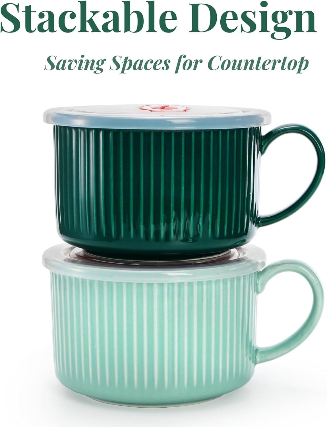 Microwave Safe Ceramic Mugs: Made of high-grade ceramic, our ramen mugs are sturdy and durable, non-toxic and BPA free, safe to clean in dishwasher. Also, our microwaveable mugs could quickly reheat your foods as both lids and the body can withstand high temperatures up to 248°F.