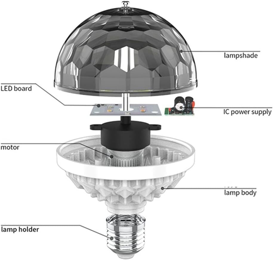 【 Easy To Use 】- The LED rotating bulb uses a standard e27 base to fit most lighting fixtures and can be easily installed in any fixture or lamp. Party lights can project rotating multi-color patterns on the wall, ceiling, or floor wherever you want. Suitable for disco, ballroom, club, bar, Christmas. Just plug and play.