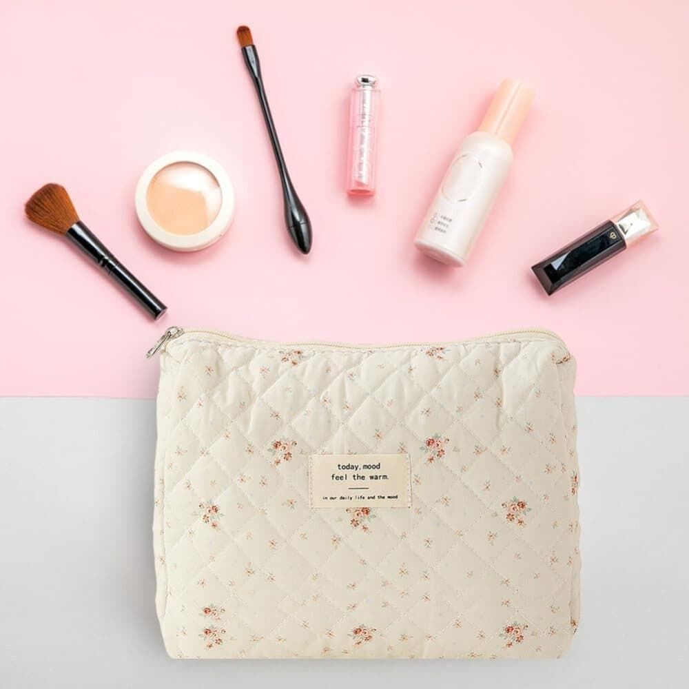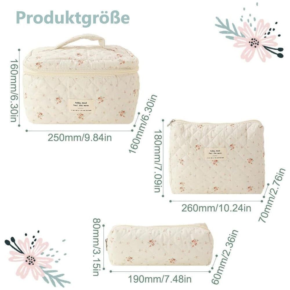 Premium 3-piece quilted makeup bag set with stylish floral design - perfect for organizing beauty essentials at home or on-the-go.