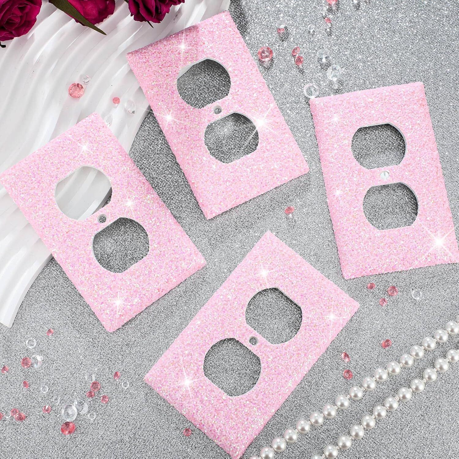 Package Contents: you will receive 4 pieces of light switch covers made of quality plastic pink artificial sequins; You don't need to worry about the flash falling off, and you can use them for a long time without losing luster or breaking