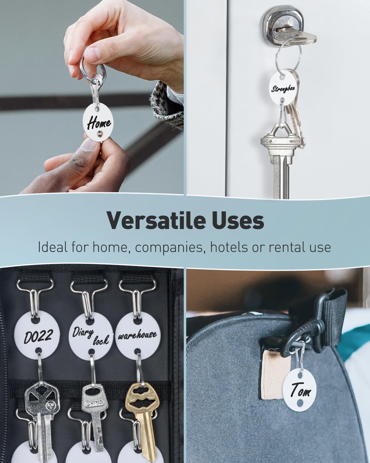 Versatile Use: Contain 50 key chain tags in total. Excellent for marking multiple items such as bunches of keys, suitcases, USB flash drives, luggage, lunch boxes, etc. Ideal for home and office use!