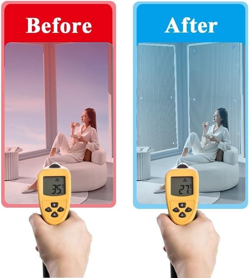 • Superior Insulation: Blocks 98% UV rays and 90% sunlight, reducing indoor temperature without electricity