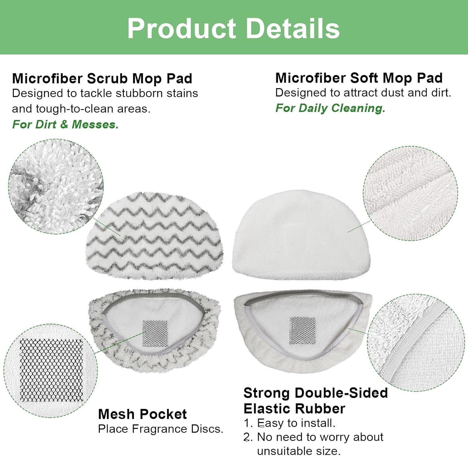 Wide Usage On Various Floor Types: These reliable, multi-use steam mop pads deliver cleaning for all your sealed hard floors, like wooden floors, ceramic tile, laminate floors, and marble floors. Suitable for home, house, room, kitchen, and office floor cleaning. etc.