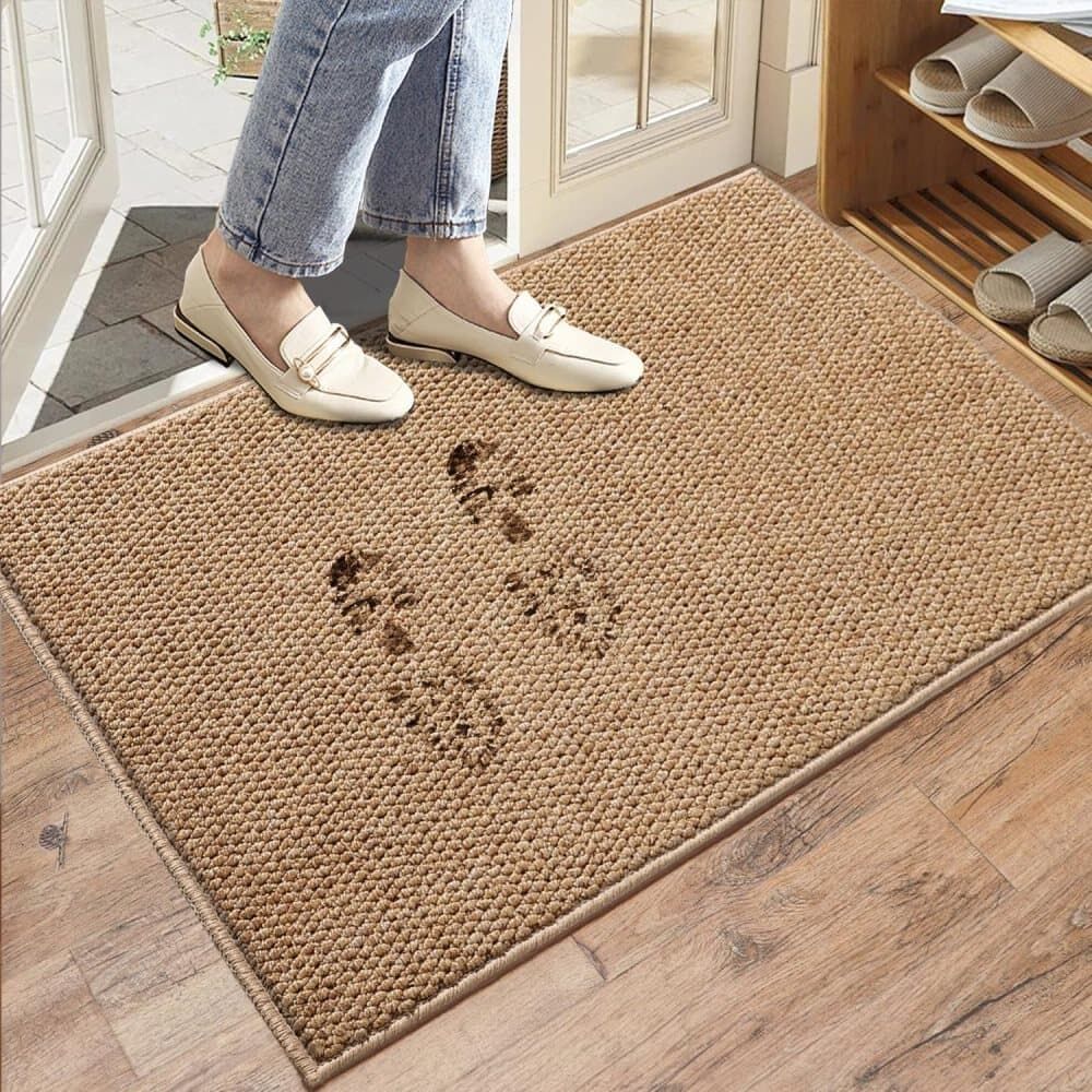 Premium faux jute doormat with dirt-trapping design, quick-drying properties and non-slip backing for cleaner, safer entrances
