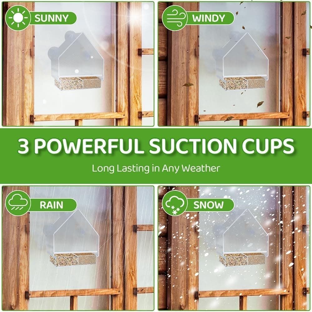 • Strong Suction Cups: Three sturdy suction cups ensure the feeder stays firmly attached to your window.