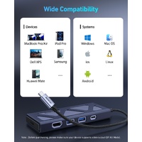 Supports crystal-clear 4K (38402160) @60Hz via HDMI 2.0 and is HDCP 2.2 compliant for streaming services. Compatible with MacBook Pro/Air (20192023), iPad Pro, Dell XPS, Surface Pro, and many other USB-C devices. OS support includes Windows, macOS, Linux, and Chrome OS.