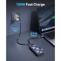 High-speed USB 3.2 Gen 2 ports (10Gbps) enable rapid file transfers for external drives and peripherals. 100W Power Delivery charges laptops while in use (up to 85W output for the host; 15W reserved for hub operation).