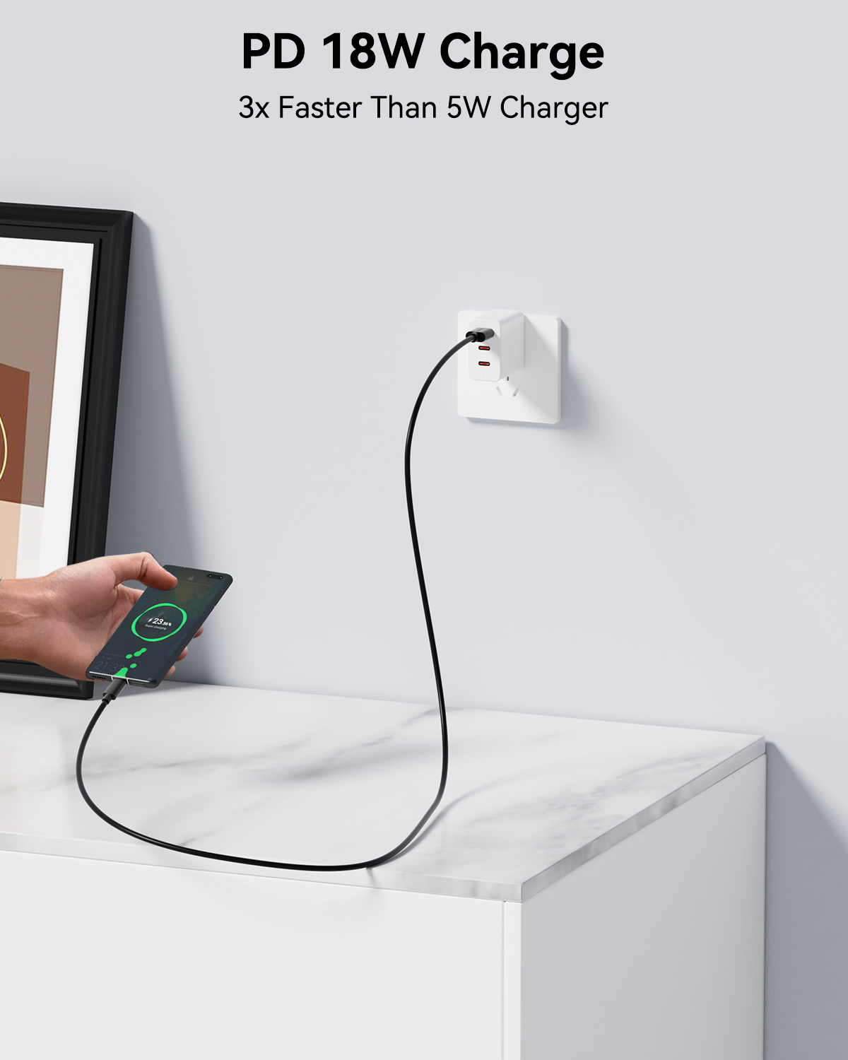 Supports up to 18W (9V/2A) fast charging, delivering efficient power for smartphones, tablets, and other Micro USB devices.