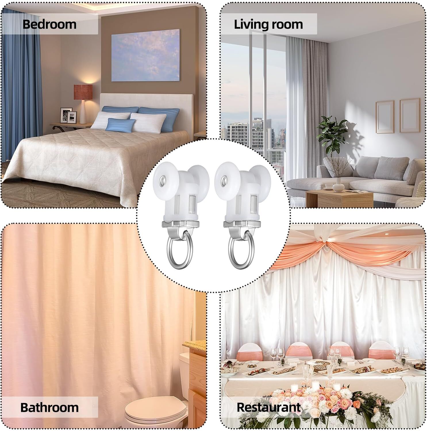 Smooth and Quiet Operation: say goodbye to annoying scratching noise, our ceiling track rollers feature a 2-wheel roller design that glides smoothly along the curtain track, providing a seamless sliding experience without resistance or noise, creating a quiet and comfortable living atmosphere