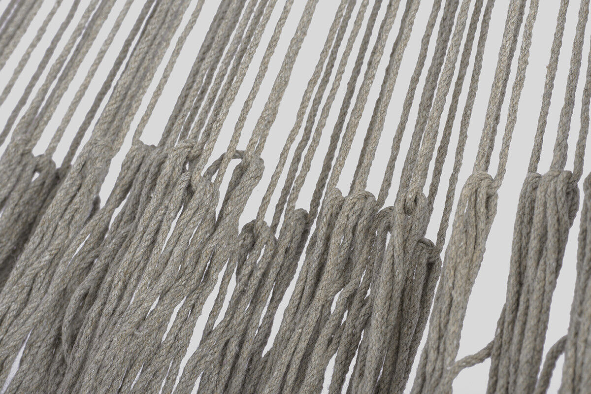 Indulge in pure relaxation with this stunning hand-woven hammock. Crafted with 100% cotton rope in our Dreams Sands catalogue colour, this elegant grey rope hammock is adorned with a luxurious fringe, making it the perfect addition to any space.