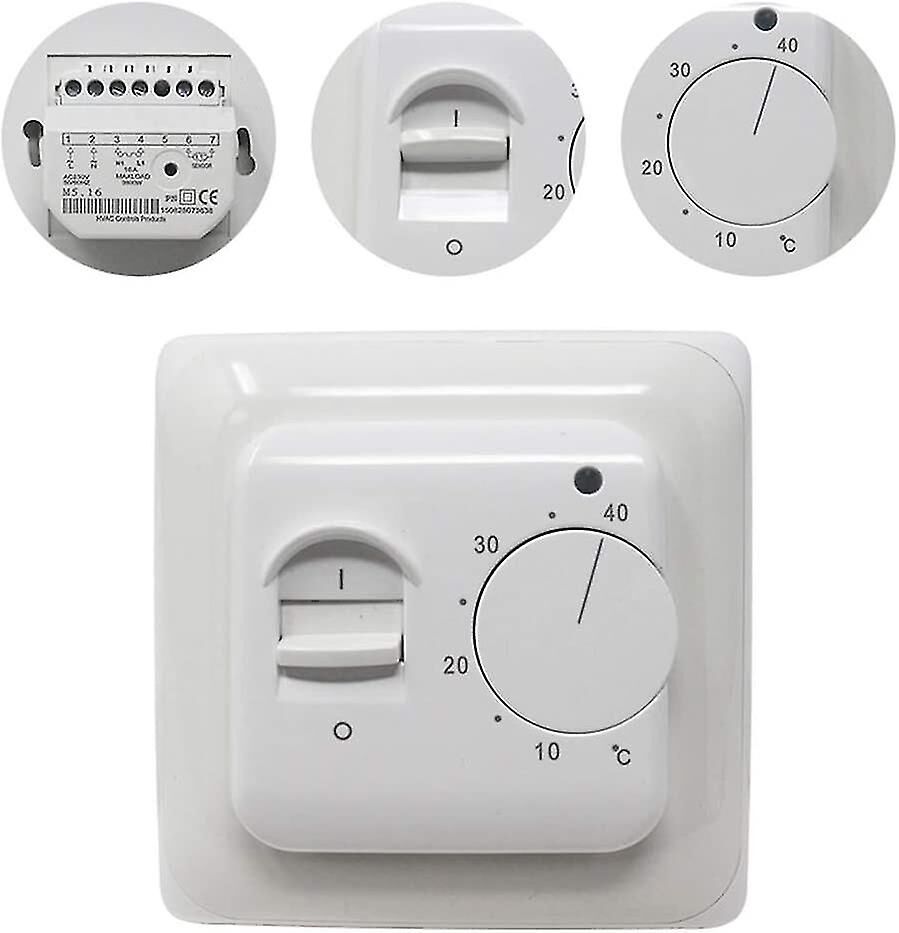 Easy to use. Turn on the push button and then adjust the floor temperature by turning the knob. This manual thermostat for electric underfloor heating is used to control the floor temperature and the operation of the underfloor heating system.