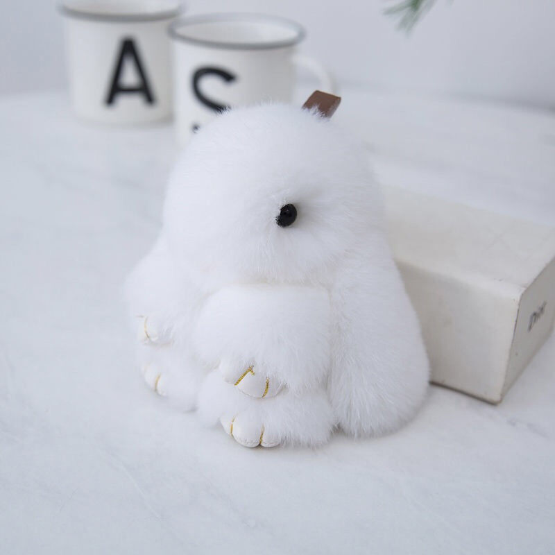 Elevate your style with this exquisitely soft rabbit fur keychain. Known for its incredible fluffiness, the genuine Rex rabbit fur provides a comforting tactile experience that you won't want to put down. This specific model comes in a sophisticated White shade, making it a versatile accessory that matches well with denim, leather bags, and professional attire. It is not just a keychain; it is a fashion statement popular across Australia for adding personality to everyday items.