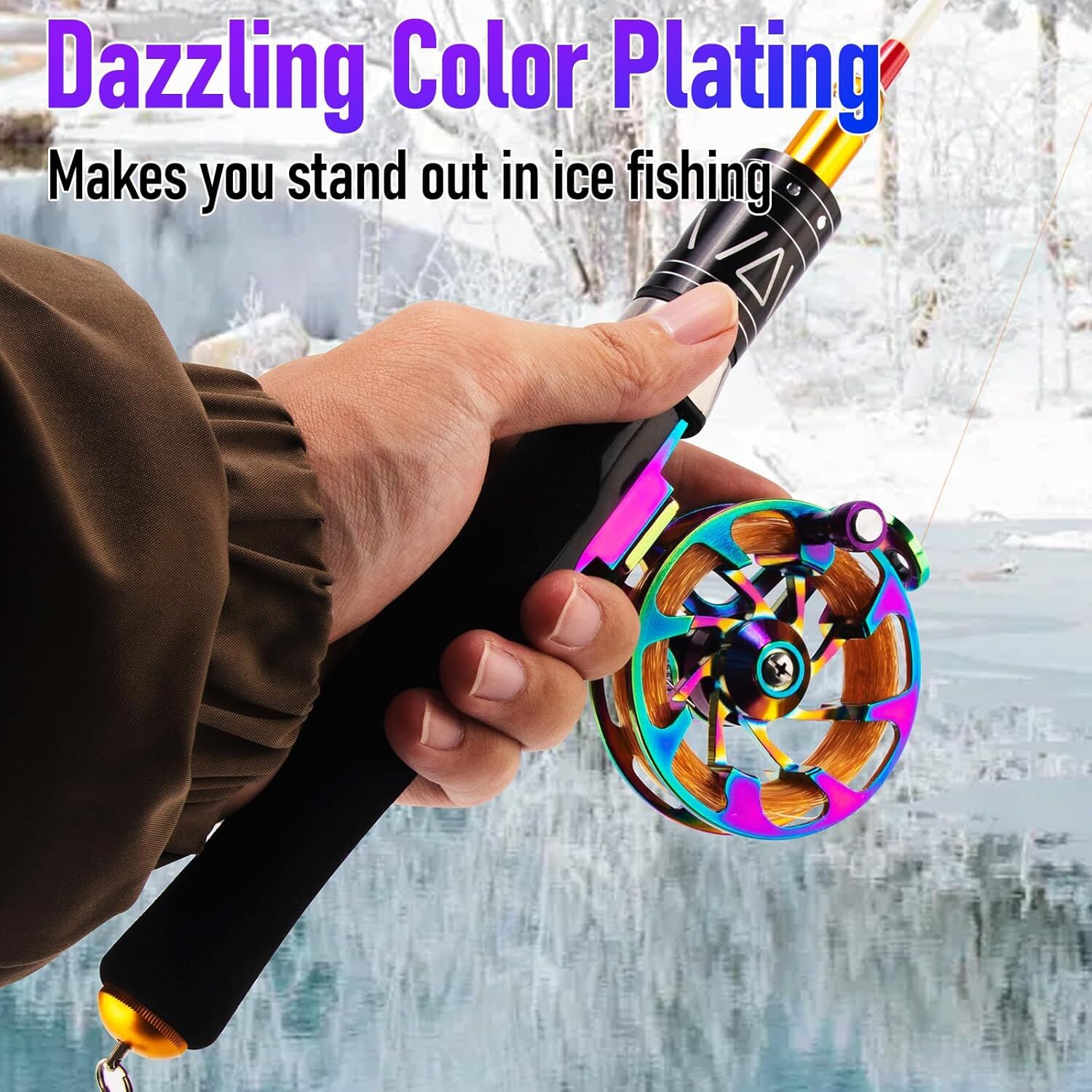 DAZZLING ICE FISHING REEL: Advanced aircraft-grade CNC aluminum alloy material ensures strength, durability and corrosion resistance while reducing the weight. Dazzling color plating makes you stand out in ice fishing.