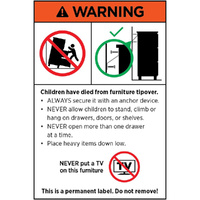 - NEVER allow children to stand, climb or hang on drawers, doors, or shelves.