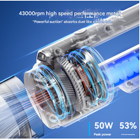 - Strong Suction Power: Effectively picks up dirt, crumbs, dust, and pet hair from various surfaces (Rated Power: 50W +/- 10%).