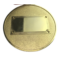 Metal gold medals attached to a green/gold ribbon ready to go on the winners neck! Great for sports days, achievement awards, parties and more! Front of the medal has the number "1" Back of the medal has an engraving plate section!