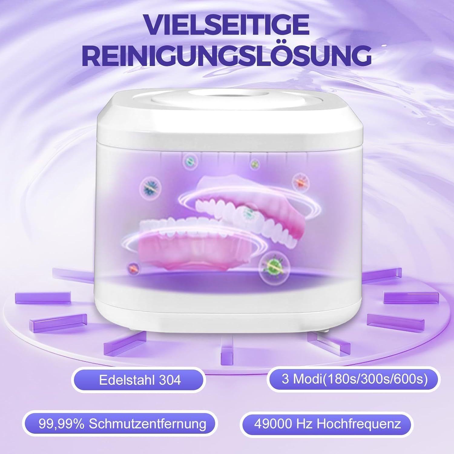 Professional UV-C Ultrasonic Cleaner (49KHz) | 340ml Tank for Dentures, Retainers, Aligners, and Jewelry
