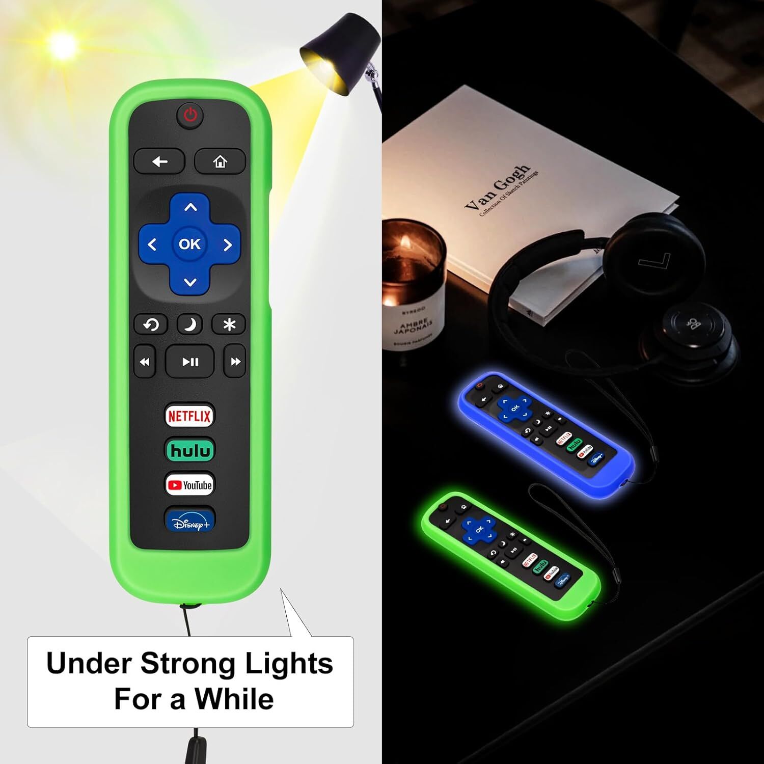 (Pack of 2) Remote Cover Case for Roku TV Remote Control/Silicone Protective Sleeve Skin - Glow in T