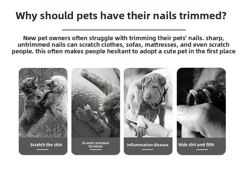 Regular nail trimming is essential for your pet's health. Overgrown nails can cause pain, affect walking posture, and become a haven for dirt. They can also scratch your skin, ruin expensive furniture, and damage flooring. This Pet Nail Clipper Set provides a cost-effective solution to these problems. The high-resilience spring mechanism makes the cutting action effortless, reducing hand fatigue during grooming sessions.
