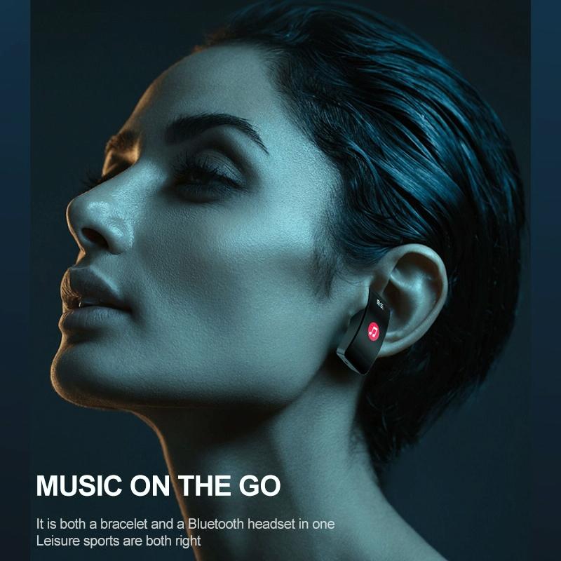 1.14 Inch Silicone Band Earphone Detachable Life Waterproof Smart Watch Support Bluetooth Call - Black