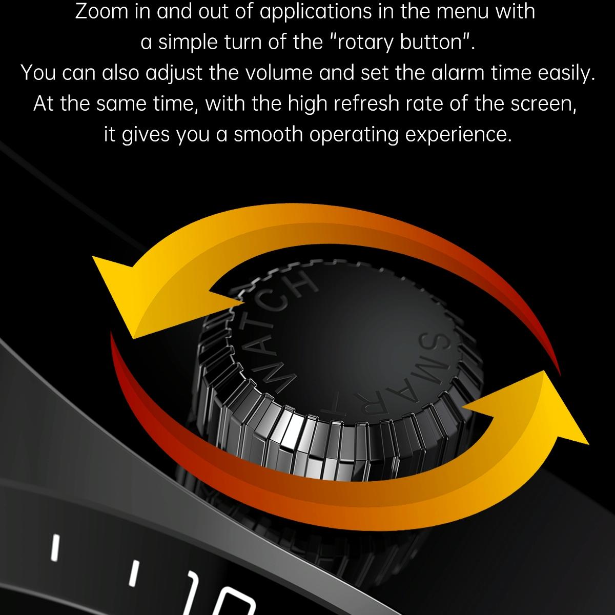 1.36 Inch Round Screen Bluetooth Smart Watch With Leather Strap - Black