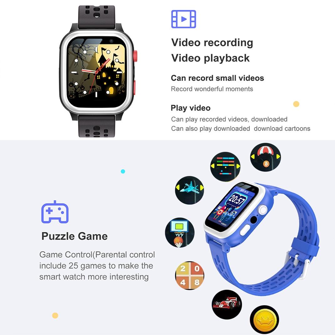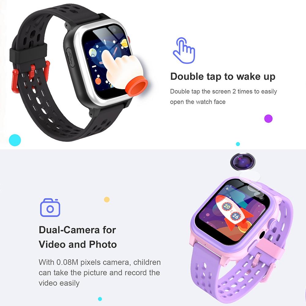 • Multi-functional design with camera, pedometer, smart reminder, remote control selfie, information push, audio and video entertainment, mobile positioning, sports tracking, and games.