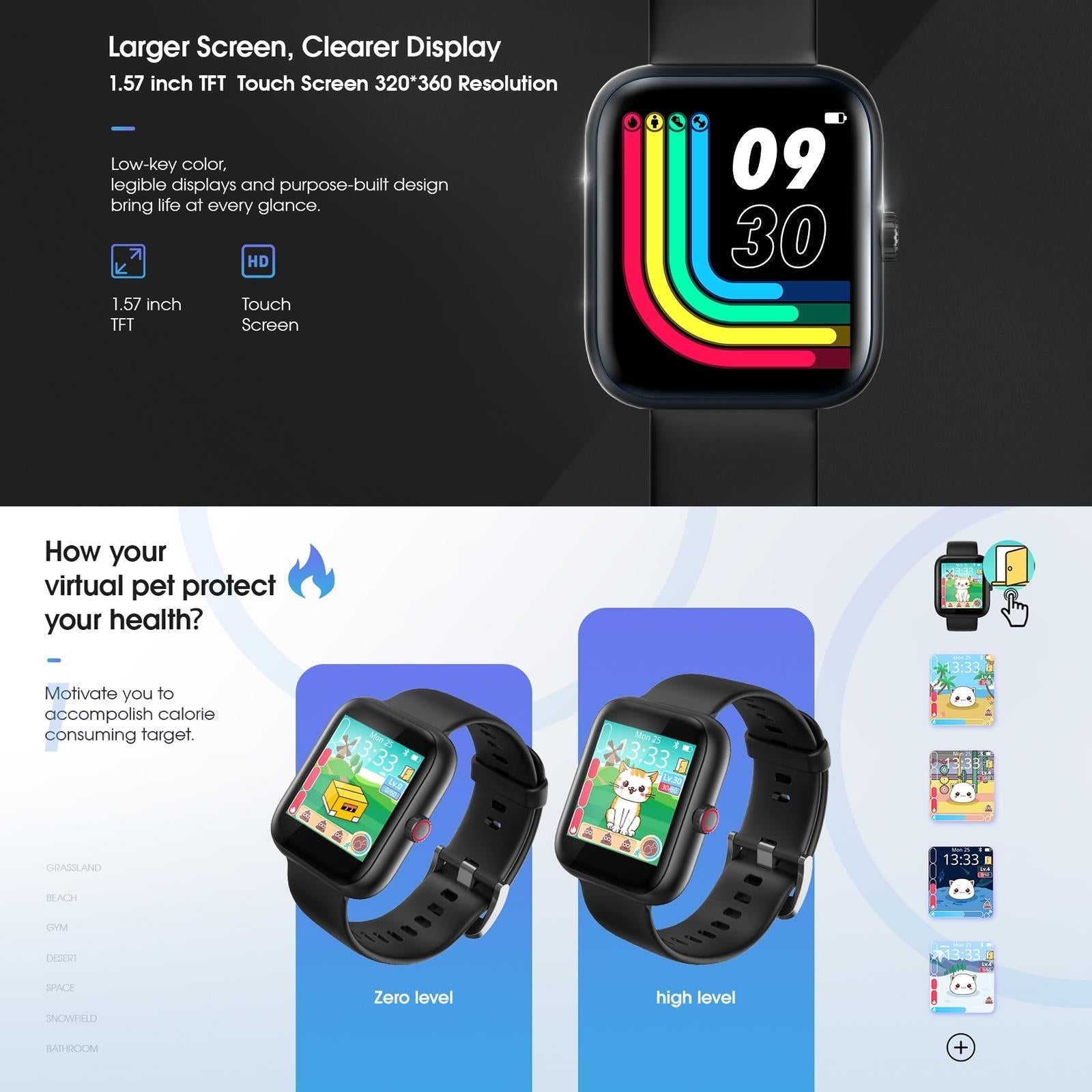 • 1 x 1.57 Inch Tft Touch Screen 5Atm Waterproof Smart Watch Support Sleep Monitoring / Heart Rate Monitoring / Sport Mode / Incoming Call Information Reminder Black