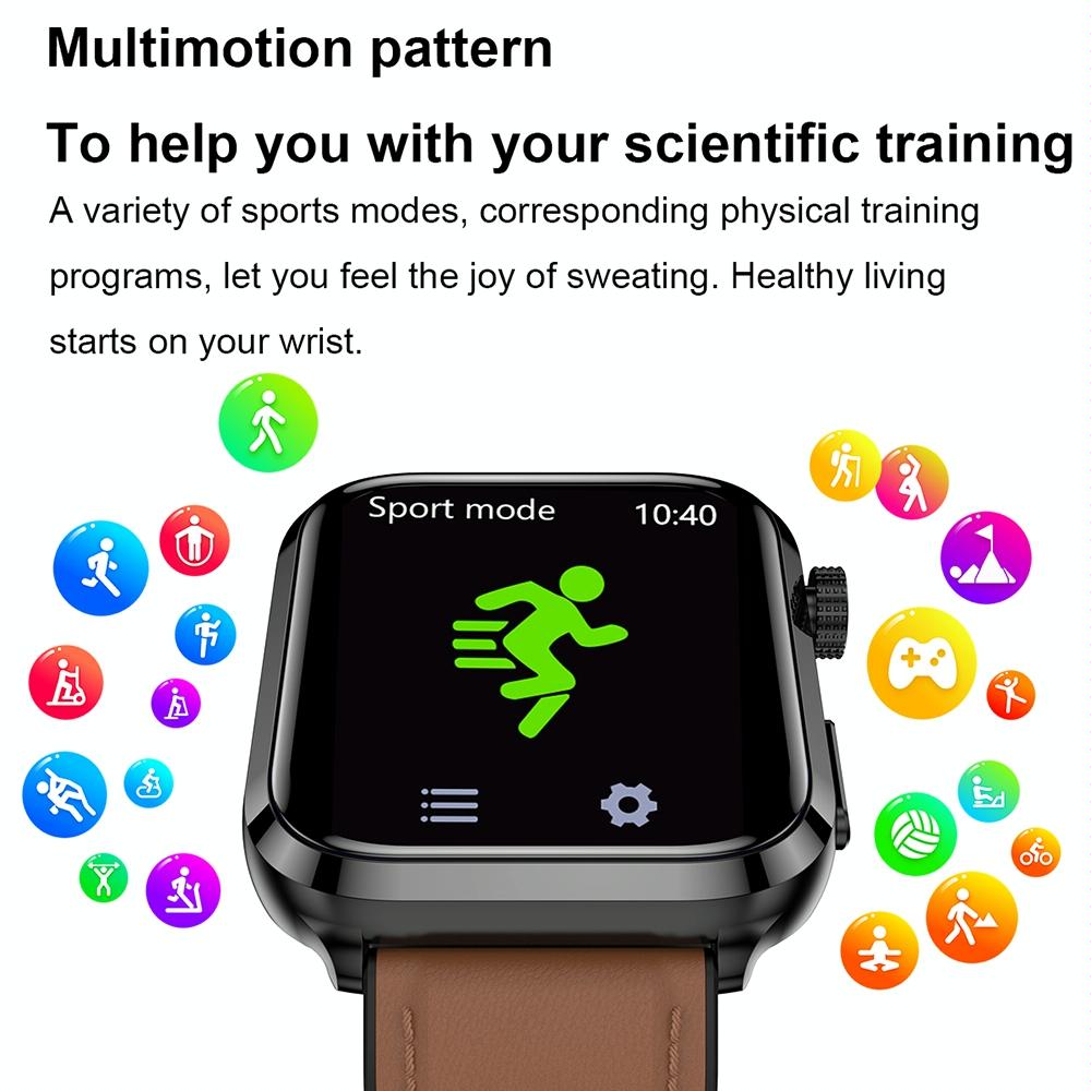 1.91 Inch Ips Screen Ip67 Waterproof Silicone Band Smart Watch Support Body Temperature Monitoring / Ecg - Red