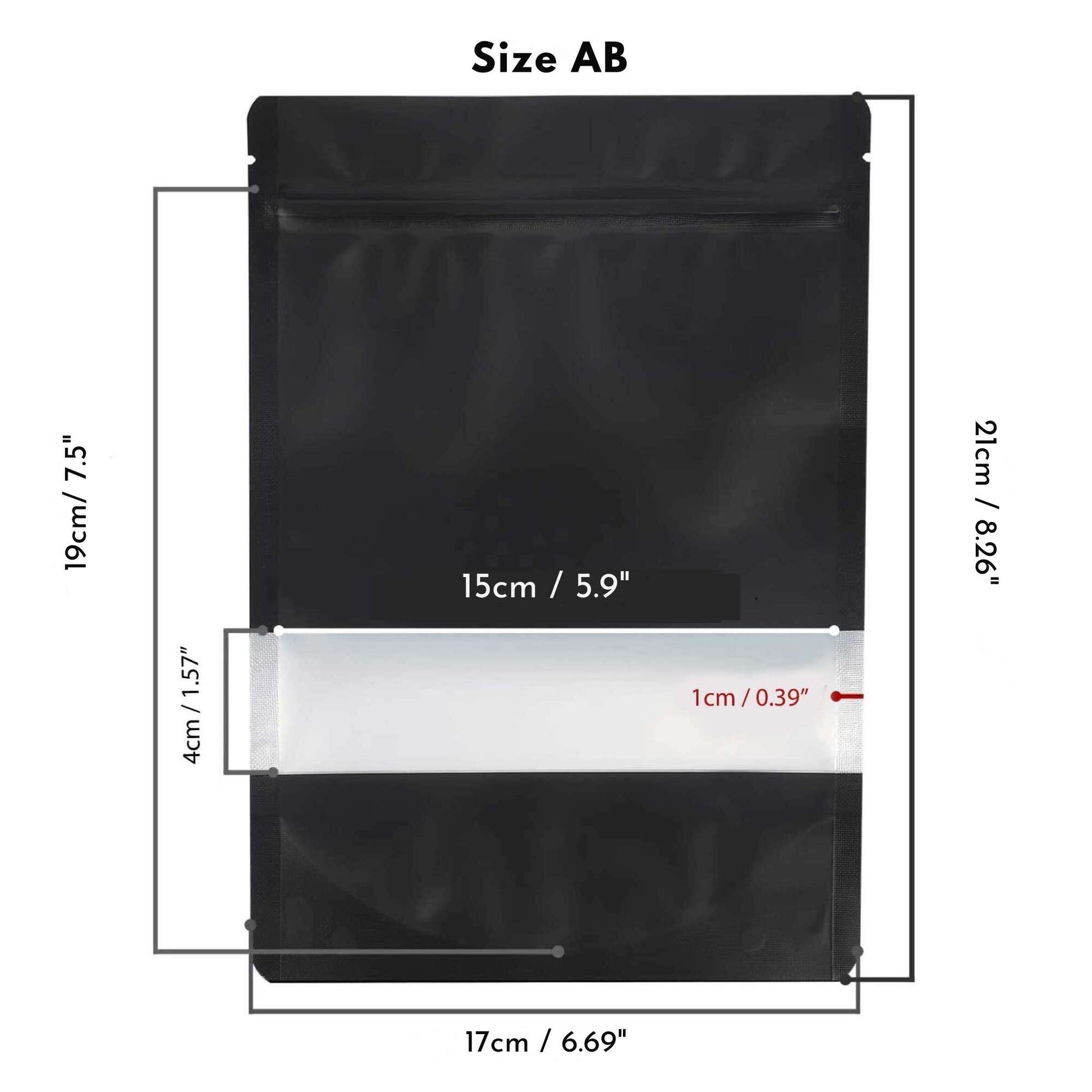 100 Resealable Stand Up Bags 21x17cm - Black Food Packaging Zip Pouch