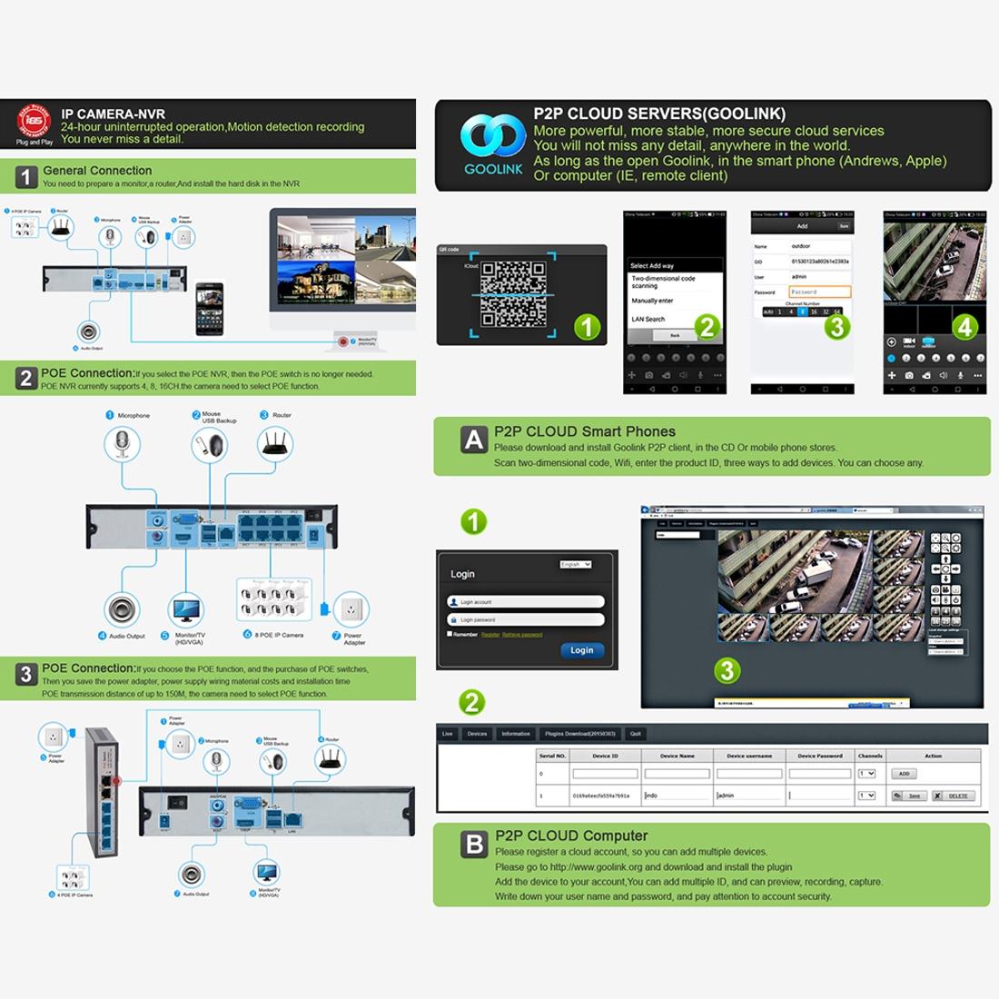 • Built-in POE power supply module (POE switch or POE NVR required)