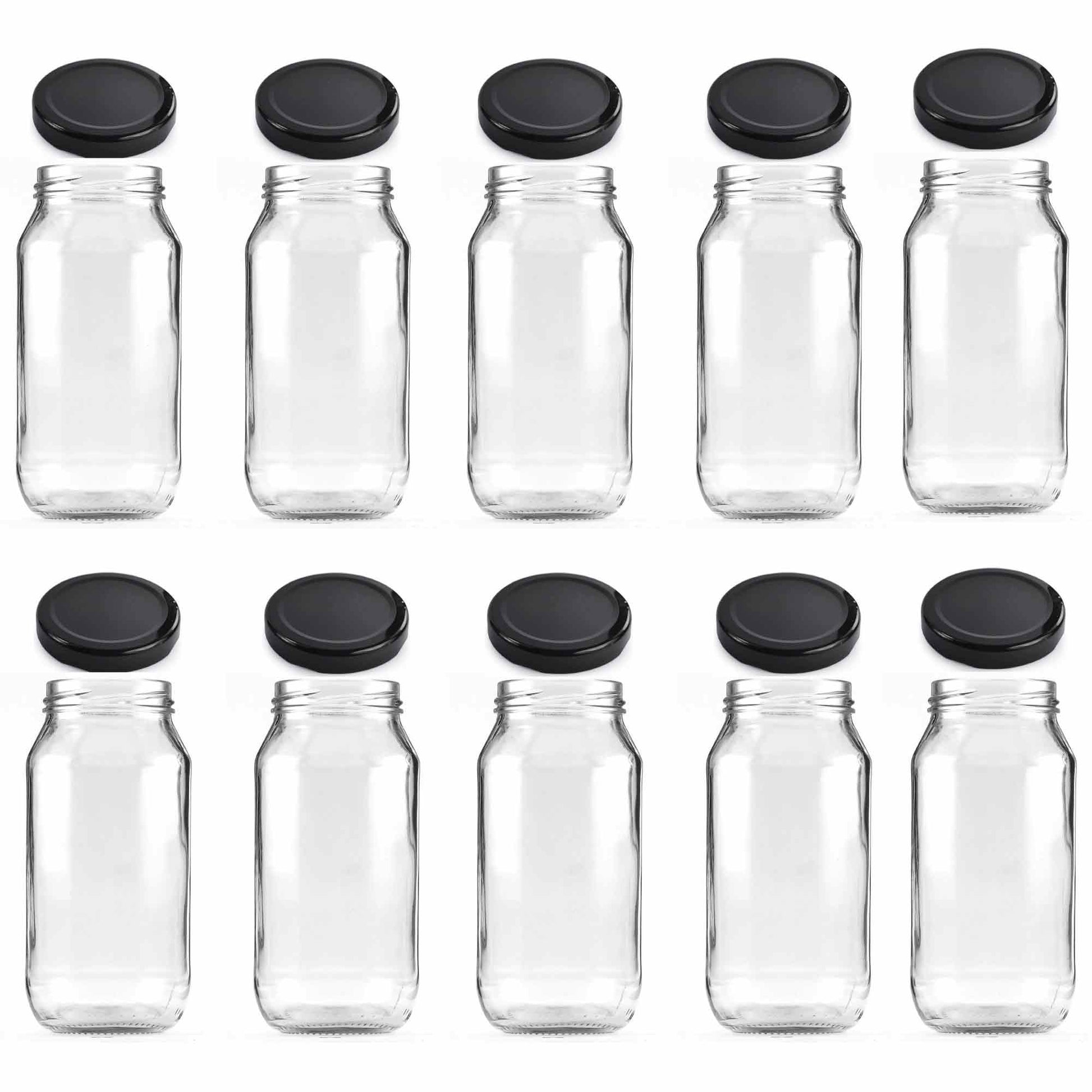10x 1Lml Flint Glass Jars with Black Metal Twist Finish Lids.