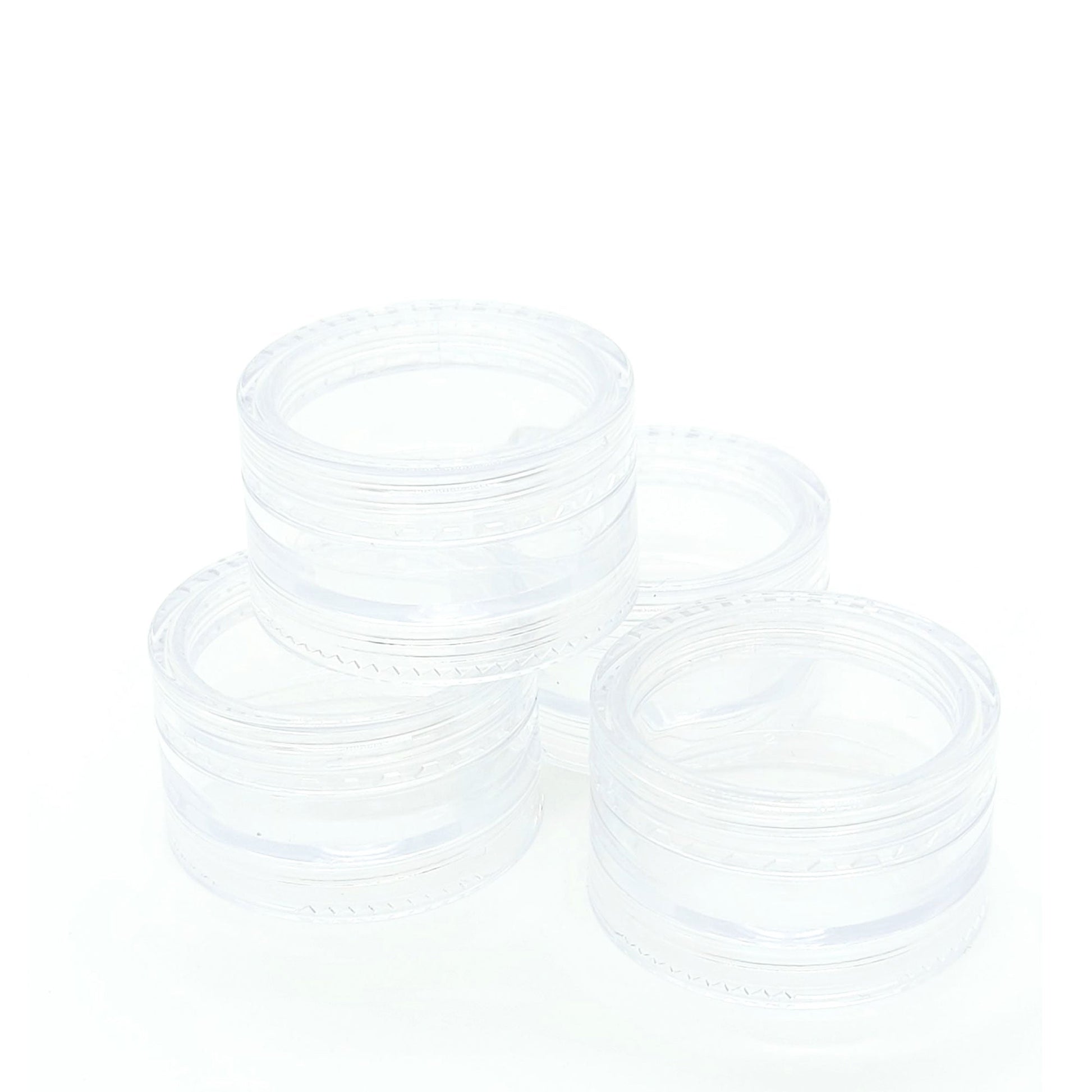 3ml clear styrene Lip Balm Jars and standard lids. These empty small pots can be used to package and store makeup, creams, balms etc. for travelling or for sampling.