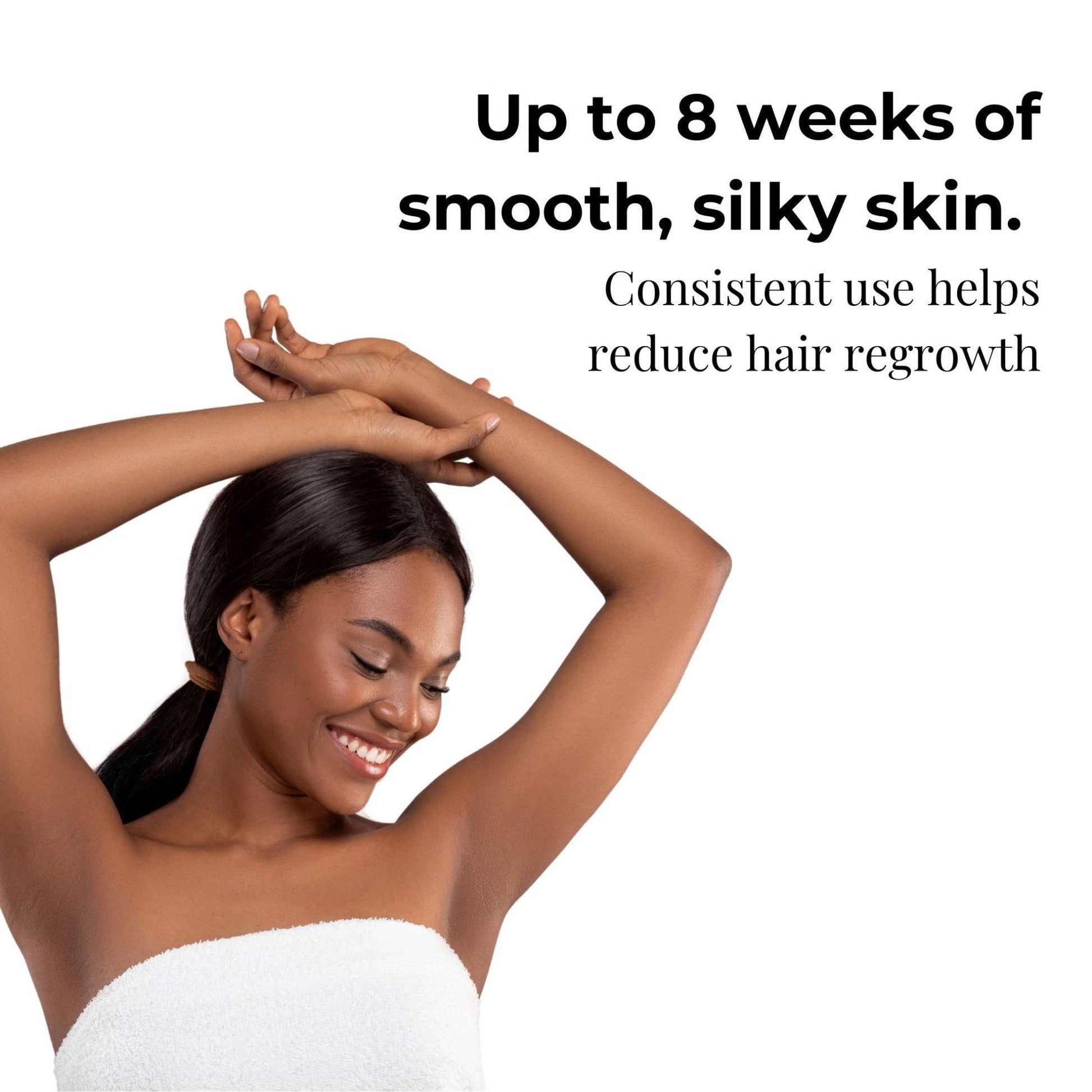 - Less Pain, Long-Lasting Results: Gently removes hair with less pain than waxing, leaving skin hair-free for up to 8 weeks while reducing future hair growth.
